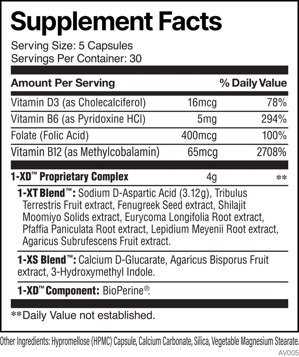 1-XD™ is a proprietary male complex with the human-studied dose of 3.12 grams of Sodium D-Aspartic Acid per serving. This comprehensive formula also contains other male-support ingredients like Tribulus Terrestris, Fenugreek Seed Extract and BioPerine®. So go ahead, take on each day with renewed vigor with 1-XD™.
