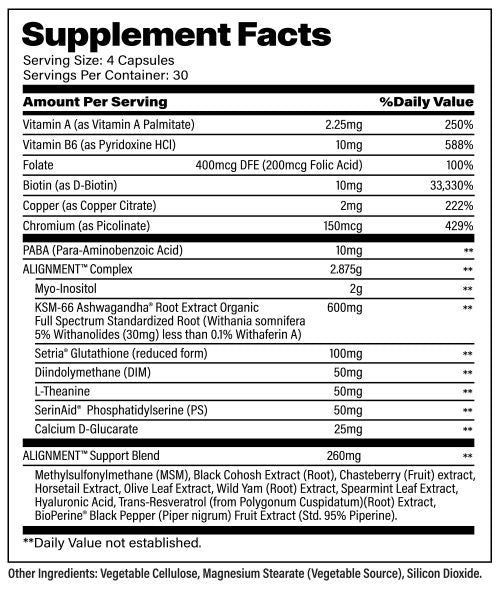 Introducing Alignment™ by Katalyst Nutraceuticals®. This ultra-comprehensive formula boasts vitamins, minerals, and other vital botanicals like the clinically-studied amount of KSM-66® Ashwagandha to help support occasional stress, balance mood, and improve energy levels. Alignment contains additional supportive nutrients like myo-inositol, DIM, chasteberry, wild yam extracts, PABA, and more. When you feel aligned, anything seems possible, right? So, if you’ve been searching for a multi-faceted product to help you deal with everything life is throwing your way, it’s time to get Alignment.