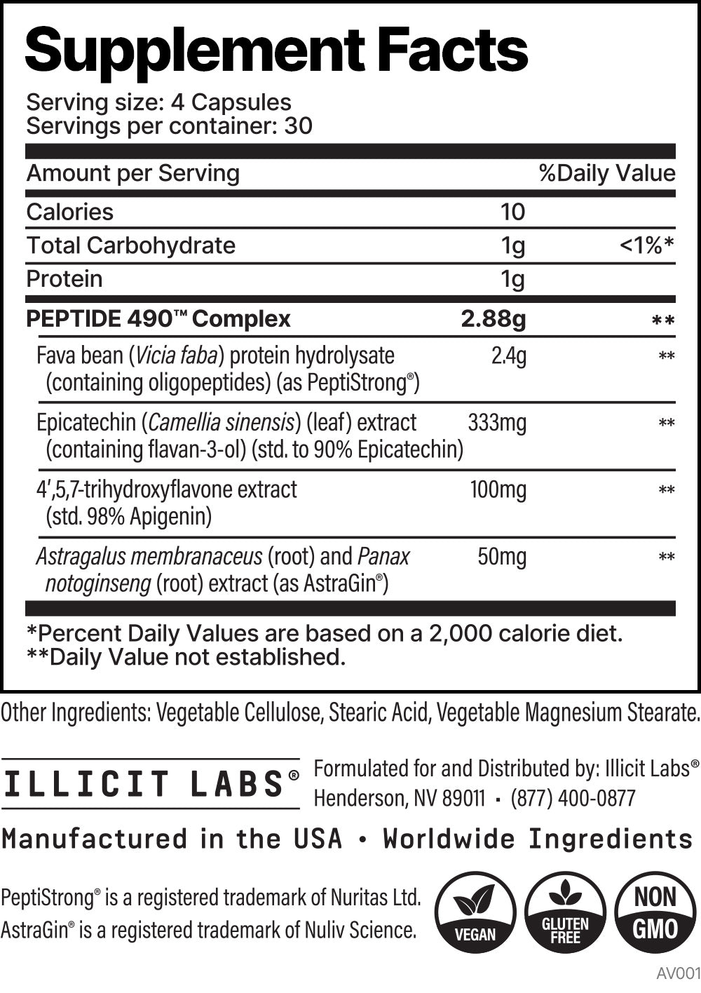 Enhanced with Apigenin™, Epicatechin, and AstraGin®—ingredients selected specifically to complement PeptiStrong® by supporting nutrient utilization, cellular wellness, and overall performance nutrition. Epicatechin, a plant-derived flavanol, has been studied for its antioxidant activity and potential influence on muscle health through myostatin pathways.