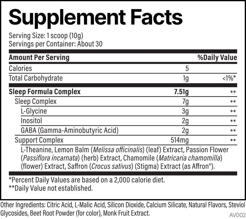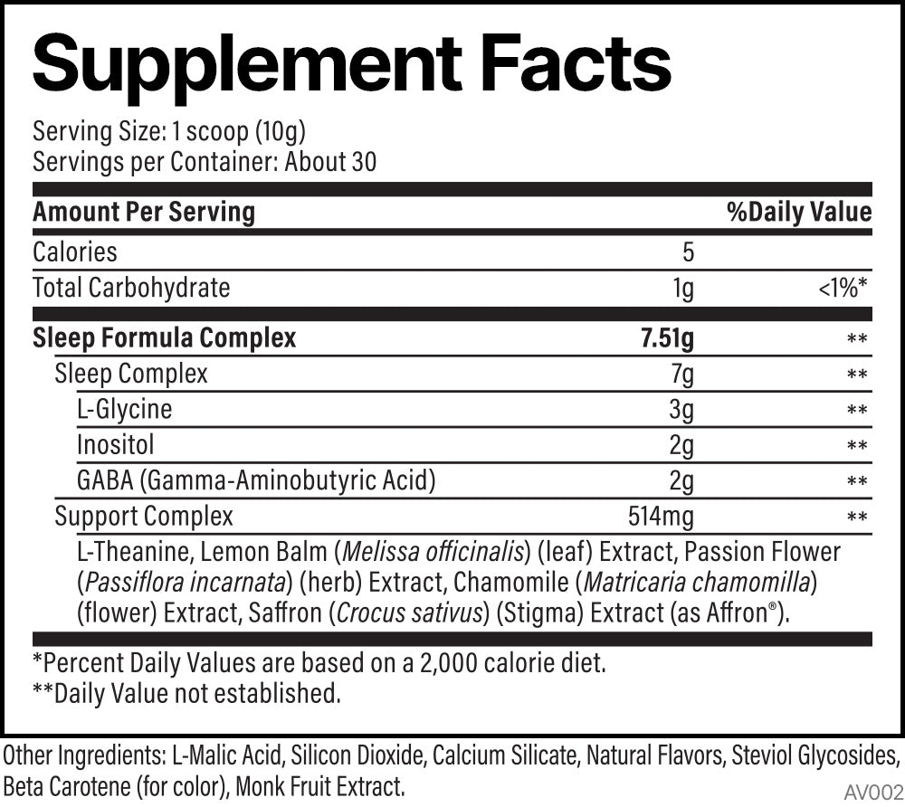 - GABA (2g) & L-Theanine (200mg): Help calm the mind, ease stress, and encourage deeper sleep.