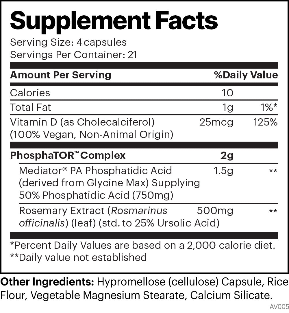 Recently published research involving 8-week clinical trials found that young adult males supplementing with the clinical daily amount of Mediator® Phosphatidic Acid (PA), a patented ingredient compound and the main one found in PHOSPHATOR™, experienced an increase in muscle size and strength in conjunction with adequate protein intake and mechanical muscle activation (e.g. weightlifting).* How is this possible? Basically, the more protein our muscles can synthesize, the more strength those muscles will have. The pathway that protein (as amino acids) must pass through to get to the muscle is called the mTOR signaling pathway. Without getting too technical, supplementing orally with PA helps to optimize this pathway, thereby maximizing those grueling weight-training sessions for better muscle gains than just weight training alone.